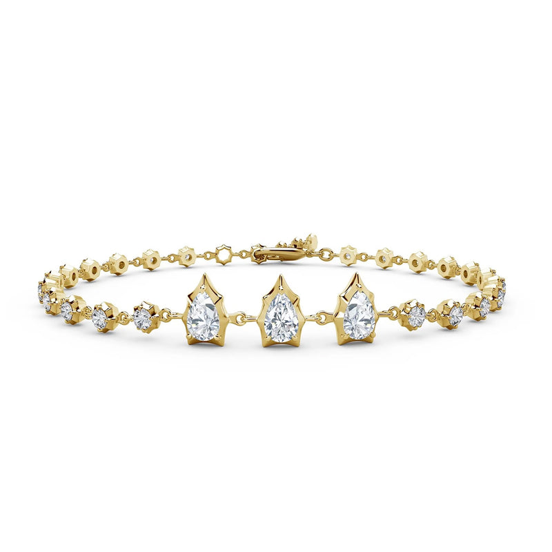 A new take on a classic tennis bracelet, the Envoy Diamond Line Bracelet combines our signature Alchemy setting with the classic feel of a vintage silhouette. Handcrafted in 18-karat gold, the Envoy Diamond Line Bracelet features 3 pear-shaped diamonds accompanied by 22 round, brilliant cut diamonds. The delicate chain design allows the bracelet to hand sophisticatedly on the wrist.
