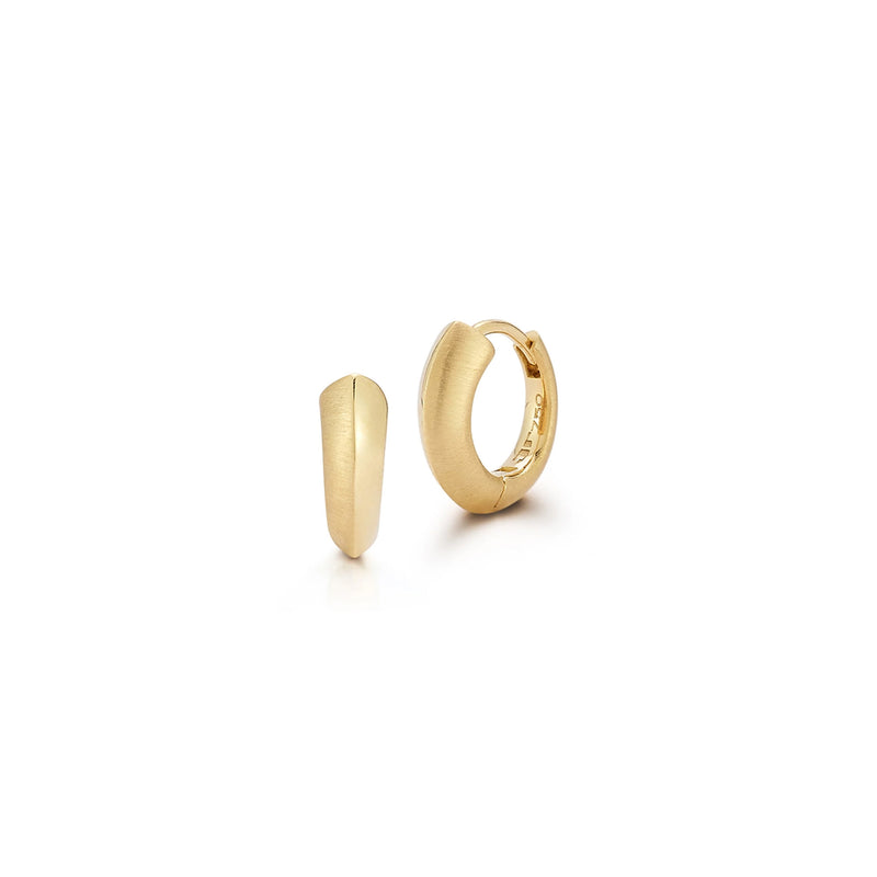 18K yellow gold Frankie Mini Huggies featuring knife edge design with high polish and satin finish, 10mm. Priced as pair.