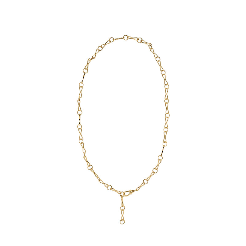 Adjustable. Can be worn as a lariat by clipping through any link, or as a normal chain when clipped to the last link. Our Charms and Coins are designed to clip through the links of this chain, so that charms remain stationary and can be spread out.