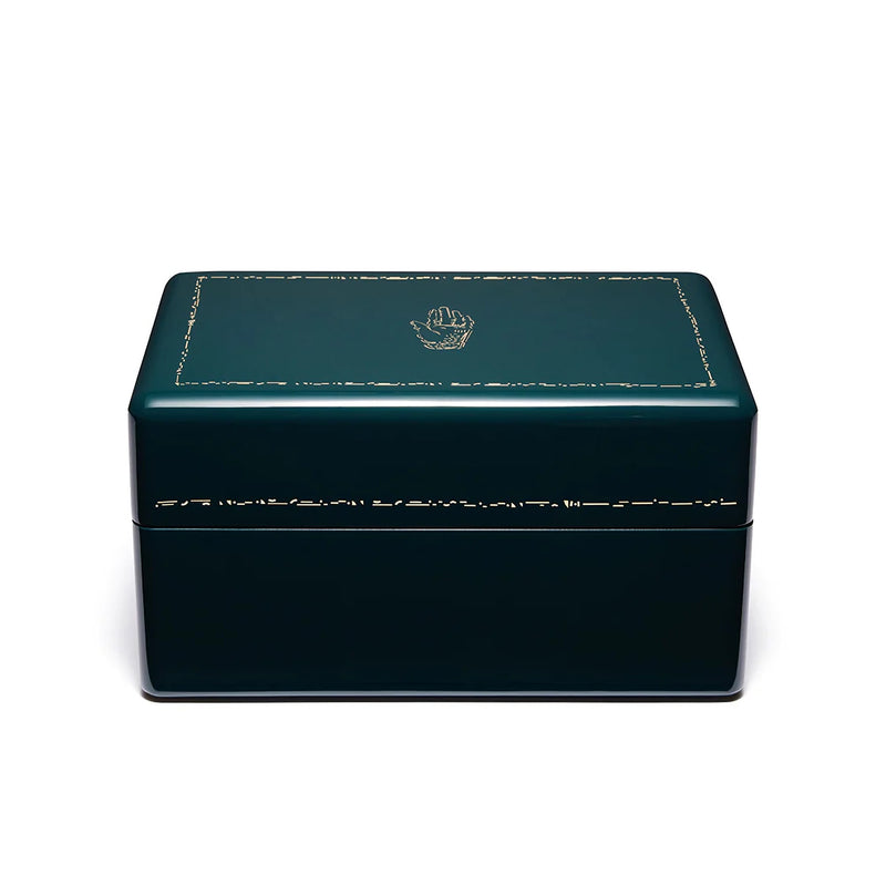 Mini Trunk is classically proportioned, in the size and scale of traditional jewelry boxes. The midnight navy high polish lacquer exterior opens to reveal a bright blue interior - a superb backdrop for your jewels to sparkle. Inside, the top tray contains four open compartments plus a ring storage area. Beneath this is another compartment tray and the lower level contains a generous open space