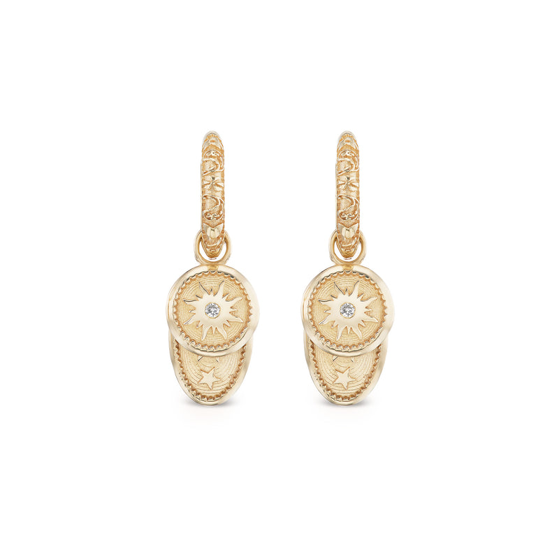 Driving through the sage fields of New Mexico, horseback riding through Georgia O’Keefe’s Ghost Ranch, and hiking through the Aspen Trees, Jesse was inspired to revisit the Desert Rising Collection, introducing the Southwestern Hoops, an expansion of our best-selling textured gold styles with a full removable round charm. Priced as a pair.