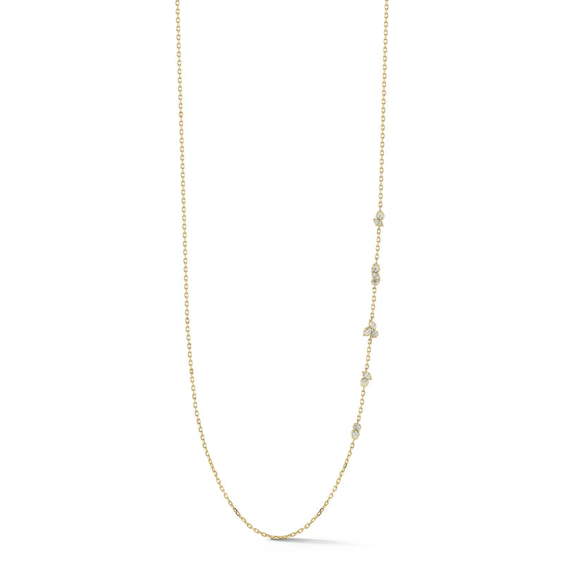 A new type of station necklace, the Posey Single Station Necklace, is a show-stopping piece that ups the ante on your neckstack. Handcrafted in 18-karat gold or platinum and featuring 0.77tcw of round, pear, and marquise-shaped diamonds. Add on your favorite charms or wear it solo for a sophisticated and elevated look.