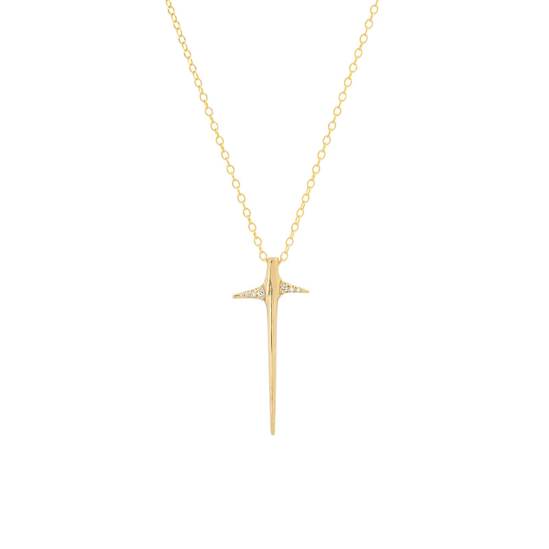 14K yellow gold Small Diamond Thorn Necklace containing 6 hand set diamonds on the points of the thorn representing strength and protection, 18" chain length.