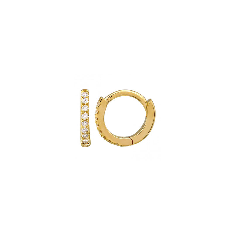 14k yellow gold, 8mm huggies, 0.05ct round diamonds, sold as a pair