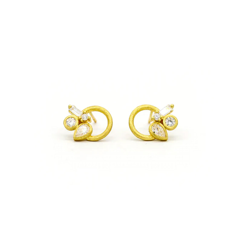 18K yellow gold lasso cluster circle earrings with large cluster of diamonds totaling approximately .83ct white diamonds.