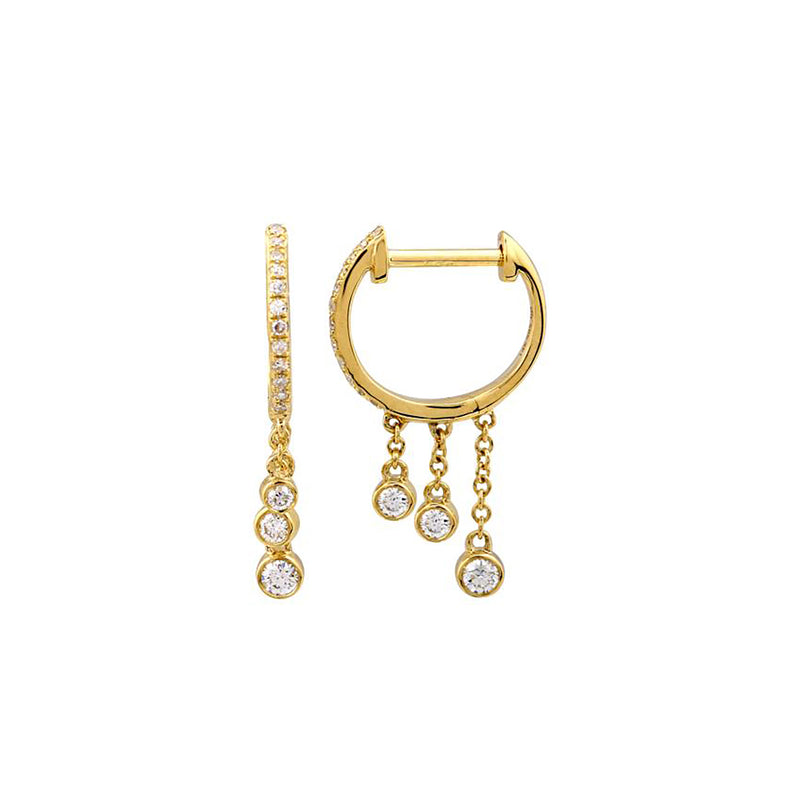 14k yellow gold, 12mm diamond fringe huggies, 0.17ct round diamonds, sold as a pair
