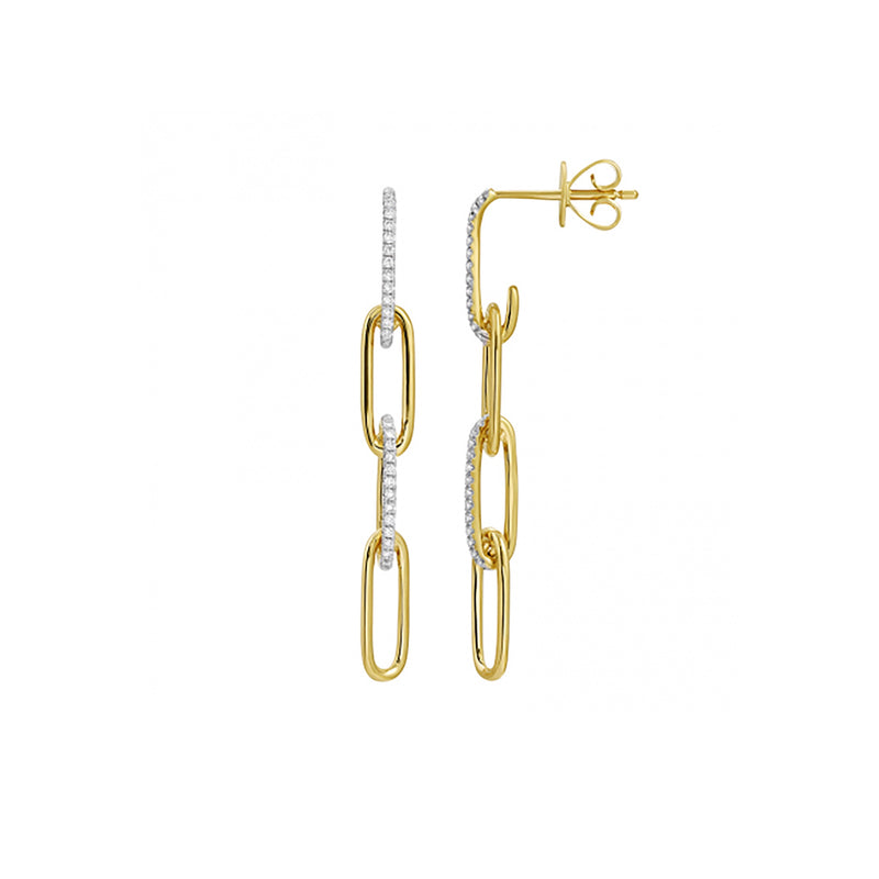 14K yellow gold Paperclip Drop Earrings containing 0.13tcw pave diamonds. Priced as pair.