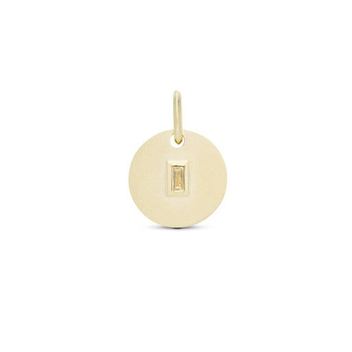 A totem for the RISKTAKERS. 18K yellow gold 12mm Skull Charm. This round charm is reversible. One side features a skull and the reverse side features a bezel set citrine baguette, (November Birthstone). Charm and chain sold separately.